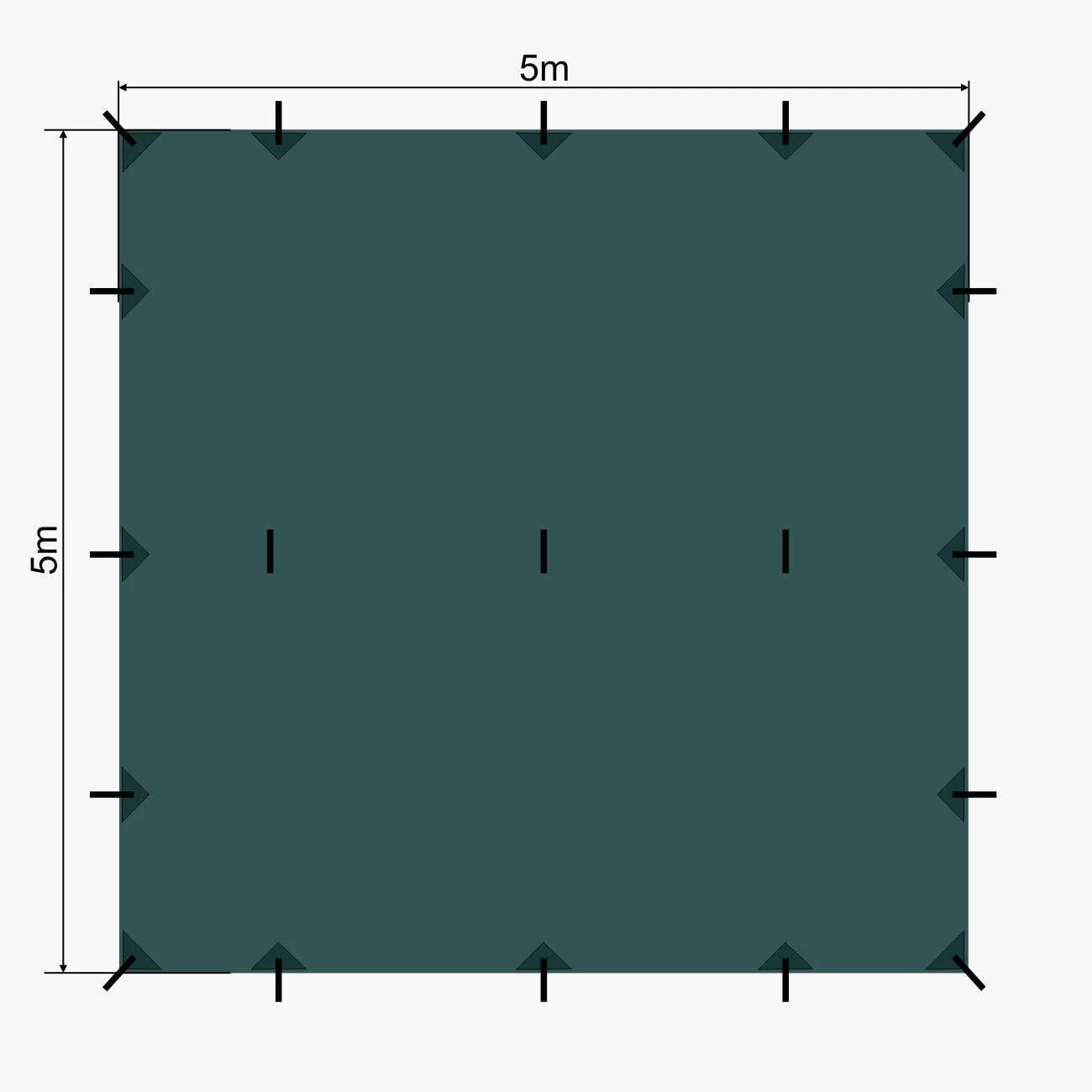 Our dark green 5m x 5m Tarpaulin is perfect for making a canopy/bushcraft shelter.