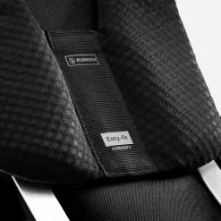 Begin by adjusting the lumbar belt. The bag’s weight should sit mainly on your hips.