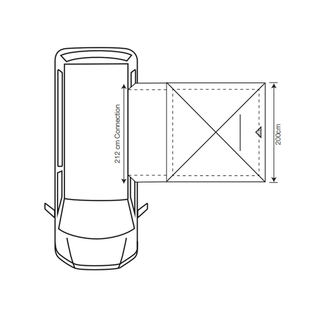 This bestselling lightweight pole-and-sleeve driveaway awning functions as a compact multi-purpose utility tent, which can be fixed alongside a campervan or motorhome and carries freestanding capabilities. A perfect addition to any touring arrangement, granting an indispensable extension of usable space, making it perfect for use as a dining, cooking, relaxation, storage, pets, toilet or shower area. Now available in 2 ergonomic cowl sizes to fit a vehicle rail height of up to 255cm, the Outhouse Handi is very simple to pitch using just 2 robust fibreglass poles. We have introduced crystal clear window panels and mesh ventilation points on both sides of the awning to maintain an airy internal space, and a separate peg-down groundsheet giving the option to remove if desired. Exterior zip-down storm covers help to ensure maximum protection against the elements throughout adverse weather conditions, whist roof ventilation points ensure airflow is maintained to reduce condensation. A stylish front canopy can be created using optional canopy poles (available separately), and the internal area can be illuminated in the evening using our optional Lumi-Link lighting system which velcros simply into place. Fixing Height 180cm – 210cm (Low) • 120HDE high density all-weather lightweight fabric