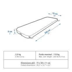 Our team of camping enthusiasts has developed this Air Basic mattress for two campers seeking the comfort of an inflatable mattress at a most affordable price.Our motivation? We want to offer you a 140 cm 2-person camping mattress, comfortable and as affordably as possible.