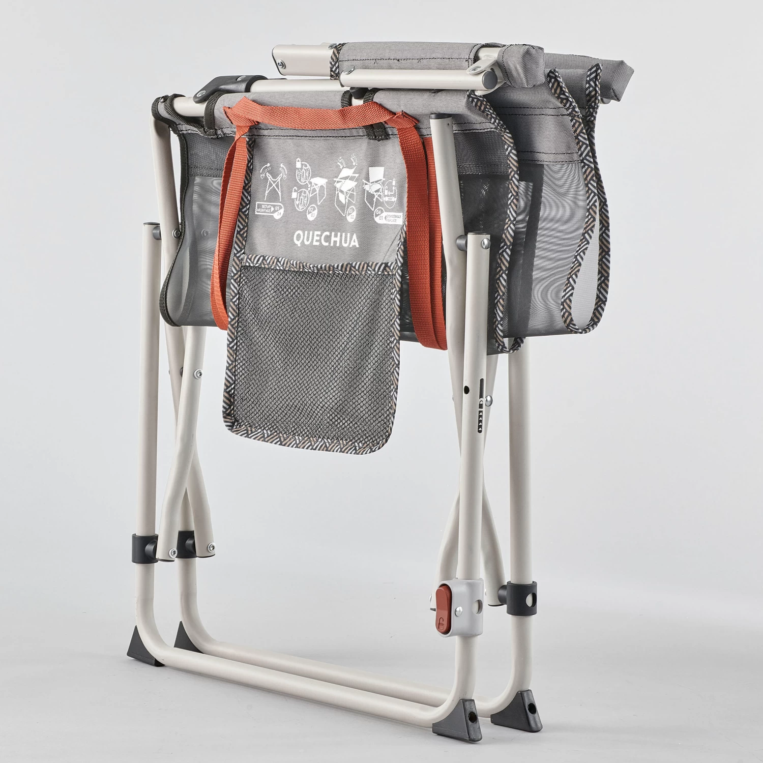 Our camping team has designed this Comfort folding chair for dining comfortably during camping trips.A top-of-the-range chair, it is extremely comfortable for dining outdoors. It has two armrests and a firm, ventilated seat and back.