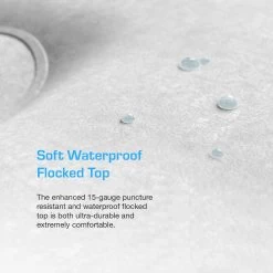 High-Quality Construction: The fully waterproof flock coating ensures no rain or spills will penetrate the air bed, while the hard-wearing material protects against punctures and scratches.